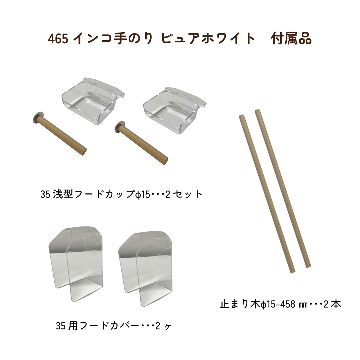 付属のフードカップや止まり木は単品販売がありますので、予備用やお買い替え時も安心です。